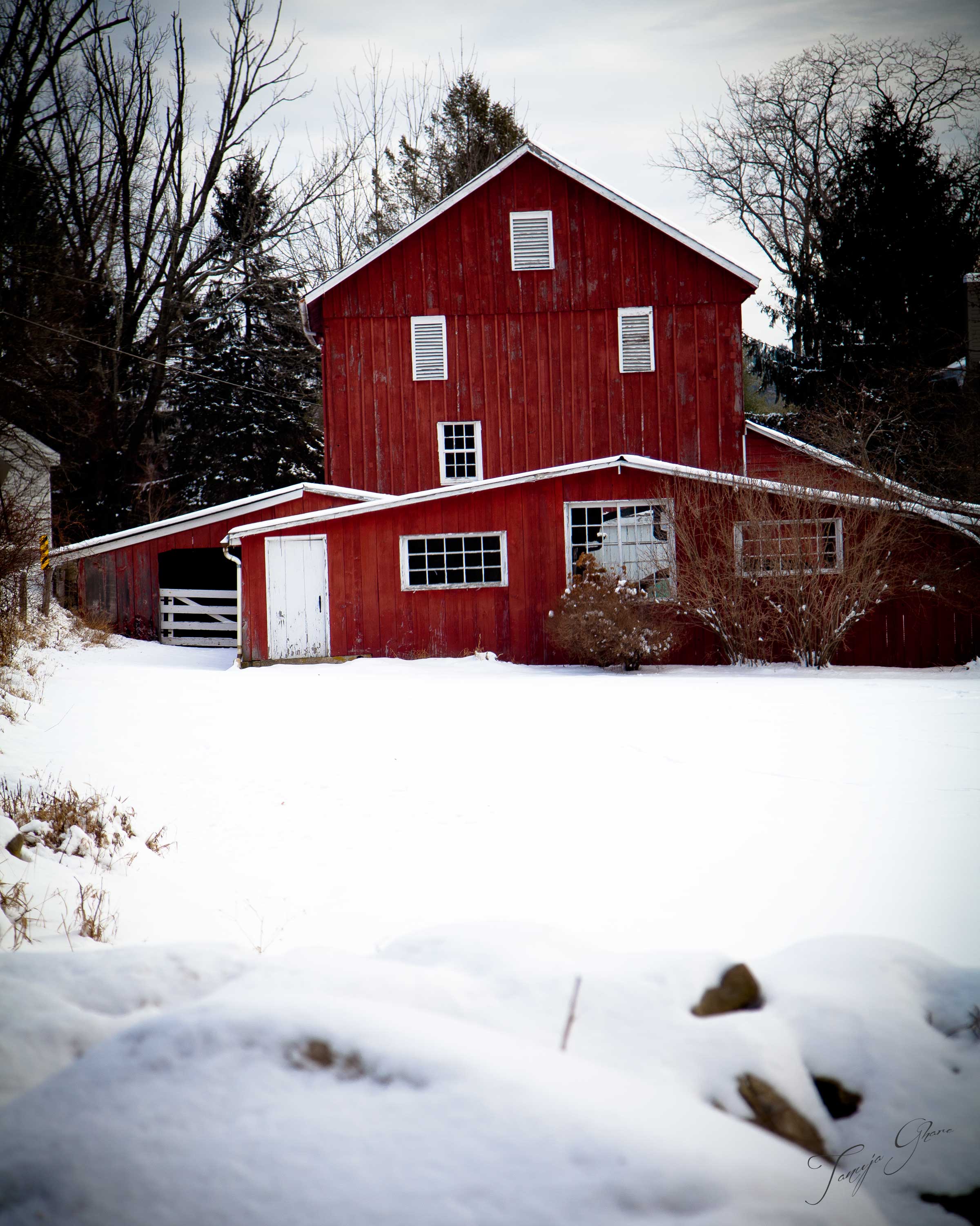 This year 2013 has been a COLD start to the winter… Not even mid-December and we had a couple of snow storms already… Naturally, that was invitation for me to start driving along the back-roads of NJ and finding something that would interest me… This red house caught my attention on one such drive and I could not stop clicking it!